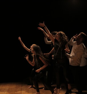 Anima in scatola esplora - attraverso la lente deformante della satira - questioni legate alla nuove tecnologie e al nostro rapporto con esse. In primis, si parte dal bisogno frenetico di documentare e condividere momenti della nostra esistenza, banali o intimi che siano. Sembra che vogliamo ‘catturare’ l’esistenza in un tentativo di ottenere - almeno per immagini - la Vita Eterna. Reo delle nostre letture di Faust e Dorian Gray, è naturale chiedersi ‘A quale prezzo?’. Non ci sfugge neppure l’ironia che il nostro tentativo come gruppo teatrale di affrontare tali argomenti avviene per via della forma artistica effimera per eccellenza: il Teatro (effimera specialmente nel momento in cui il ‘Teatro’ non si riduce al testo scritto ma prende la forma di una scrittura scenica fatta, oltre alle parole, di movimenti, gesti, suoni, respiri, sguardi, elementi impossibili da ‘catturare’ o ‘condividere’ ma percepibili solo dal vivo da un pubblico realmente, consapevolmente presente per il Rito/Festa teatrale).Così in una struttura drammaturgia fatto di quadri, intermezzi, racconti brevi, lo sviluppo dei quali si colloca all’interno di un evento divulgativo sponsorizzato da un fantomatico ‘Istituto Transcorporale per lo Sviluppo Armonioso dell’Uomo’, la storia/non-storia ci porta tra L’Africa e L’America, tra il ‘Blues’ e il ‘Rock’, tra il Passato e il Futuro, ipotizzando scenari futuri distopici con un approccio satirico la quale ferocia lo collega pienamente nella migliore tradizione Swiftiana.